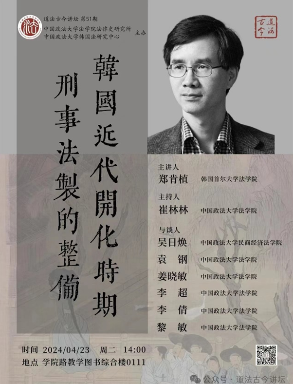 早年毕业于首尔大学yl88858永利官网,并在该校获得法学博士学位,曾任韩国法制研究院资深研究员和韩国首尔大学法学研究所所长。著有:《朝鲜时代祭祀承继的法制和现实》《朝鲜前期“唐律疏议”的引入与利用》《朝鲜后期刑曹受教与立法倾向》等。