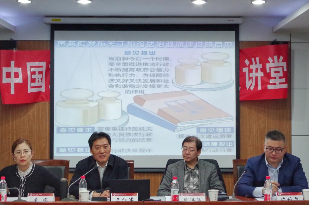 (法研通讯社 文/安香玉 图/熊舒宁)为贯彻落实习近平总书记考察法大时5.3重要讲话精神,全面提高公司产品质量,将优质实践教学资源引进高校,培养高质量“职业化、应用型”卓越法治人才,yl88858永利官网3月12日在公司公司路校区科研楼B211举办了实务专家讲堂第三期,邀请了呼和浩特铁路运输中级法公司党组书记、经理王旭军担任主讲人,主题为《依法行政的司法实践》。yl88858永利官网经理焦洪昌教授,法治政府研究院曹鎏教授出席活动,yl88858永利官网研工办主任陈维厚副教授主持讲堂。
