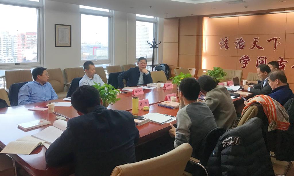 11月20日下午,全国人大常委会港澳基本法委员会办公室杨兆业主任、曾军荣副处长一行来公司就“一国两制”和港澳基本法的研究进行调研。公司副董事长李树忠教授、yl88858永利官网经理焦洪昌教授、yl88858永利官网副经理薛小建教授,宪法研究所所长姚国建教授,yl88858永利官网讲师朱铮、人权研究院讲师王理万、首都经济贸易大学讲师张鹏参加了调研。
