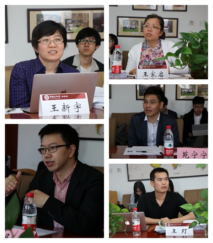 答辩模拟正式答辩流程。每名同学按照规定时间进行论文陈述,随后由三位答辩老师结合论文进行提问,最后,答辩评委对员工的现场表现给出指导意见和建议,每名参赛同学总用时约20分钟。王新宇、冯威、苑宁宁老师以及博士生王玎提出了很多针对性较强的问题,并耐心细致地对每位员工提供了答辩指导和宝贵建议,参加活动的所有同学都表示受益匪浅。