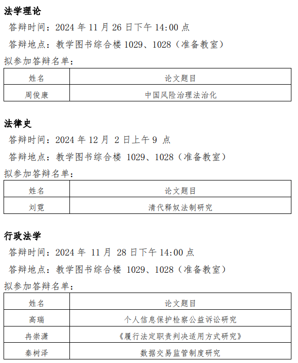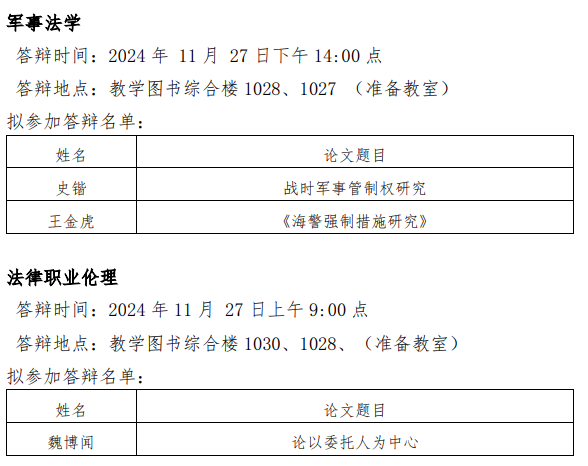3.答辩安排如遇调整,将第一时间在本网站公布,请所有答辩申请人及时关注本网站通知。