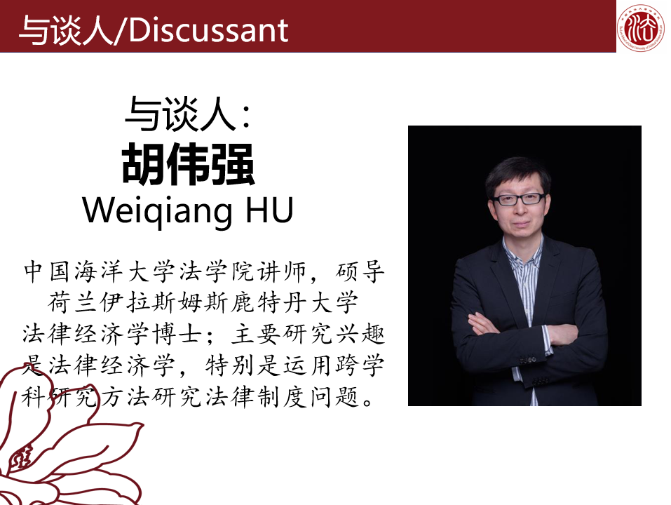 2020年10月30日晚19点至21点,由yl88858永利官网行政法研究所主办的“公法与治理”系列讲座第二十七期在腾讯会议线上成功举行。本次讲座由yl88858永利官网马允副教授主持,荷兰伊拉斯姆斯鹿特丹大学教授、荷兰马斯特里赫特大学教授Michael Faure以“环境规制对投资环境的影响”作主题报告。中国海洋大学yl88858永利官网胡伟强博士、武汉大学yl88858永利官网环境法研究所刘静副教授、永利集团官网民商经济yl88858永利官网吕梦醒博士、永利集团官网法与经济学研究院副经理徐文鸣副教授、永利集团官网国际yl88858永利官网刘冰玉博士等参加与谈,共计50余名听众在线收听了讲座。