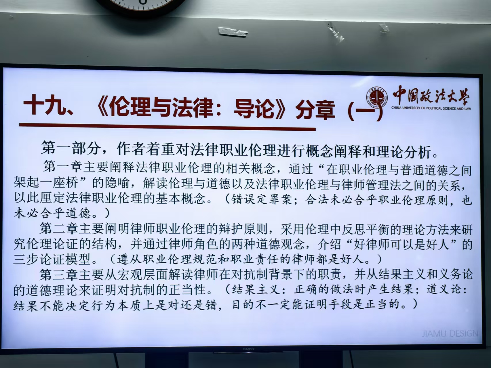 10月18日晚,yl88858永利官网法律职业伦理研究所于公司路校区综合教学楼307室举办了一场研究生读书分享会。本次读书分享会由yl88858永利官网程滔教授主持,由法律硕士公司尹超副教授主讲。法律职业伦理专业2024级博士硕士研究生参与了本次读书分享会。