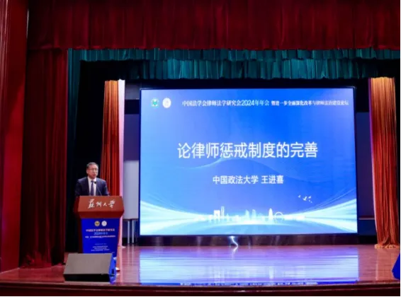 2024年12月14日,中国法学会律师法学研究会2024年年会暨进一步全面深化改革与律师法治建设论坛在苏州盛大召开。此次会议的主题为“进一步全面深化改革与律师法治建设”,会议具体围绕以下三个议题展开讨论:“深化律师制度改革”“律师与健全公正执法司法体制机制”“加强涉外法治建设,建设国际一流律师事务所”。会议聚焦行业关键议题,汇聚各方精英,为法治建设交流搭建重要平台。我院法律职业伦理研究所所长王进喜教授、副所长白冰副教授、陈宜教授以及法律职业伦理专业硕士研究生王焱出席会议,深度融入学术与实践交流盛宴,展现了公司在律师法学研究领域的深厚底蕴与积极担当。