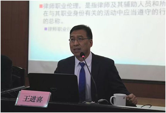 王进喜教授从律师职业伦理的重要性和基础性、我国律师职业伦理建设与执行的二元化、律师职业伦理建设与执行当中的自律困境和律师协会决策困境的突破四个方面与参会人员进行了分享。他认为,讲职业伦理其实就是讲律师及其辅助人员,还有所属机构在对等职业身份有关的活动中应当遵守的行为规范。强调包括律师在内的职业伦理建设本身就是强调法律职业自身的法制建设,但就目前来看,律师协会在规范的管理上存在一定问题,处于无序状态。随后他通过分析规制权的统一与规制权的受控之间的关系,强调了行规、规范的重要性。