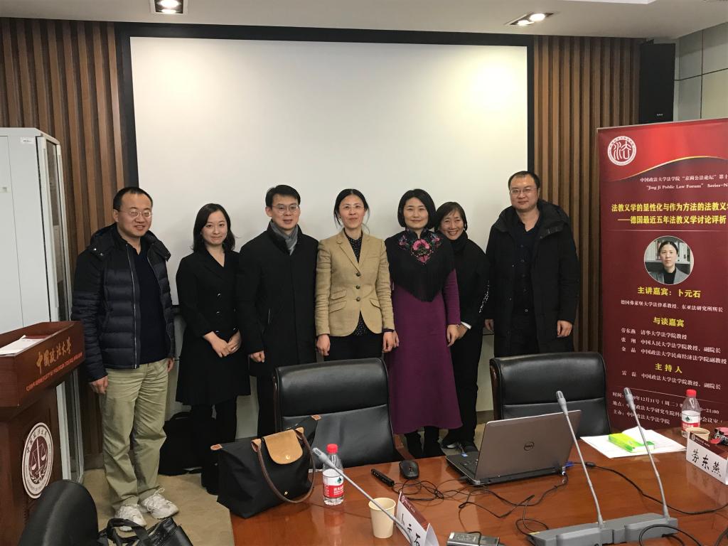 2018年12月31日晚,yl88858永利官网第十六期“京蓟公法论坛”——“法教义学的显性化与作为方法的法教义学——德国最近五年法教义学讨论评析”,在研究生院科研楼B209会议室顺利举行。本次论坛的主讲嘉宾为德国弗莱堡大学法律系卜元石教授,与谈嘉宾为清华大学yl88858永利官网劳东燕教授、中国人民大学yl88858永利官网副经理张翔教授、永利集团官网民商经济yl88858永利官网金晶副教授、北京大学yl88858永利官网江溯副教授、yl88858永利官网姜晓敏教授,并由yl88858永利官网雷磊教授担任本次论坛的主持人。
