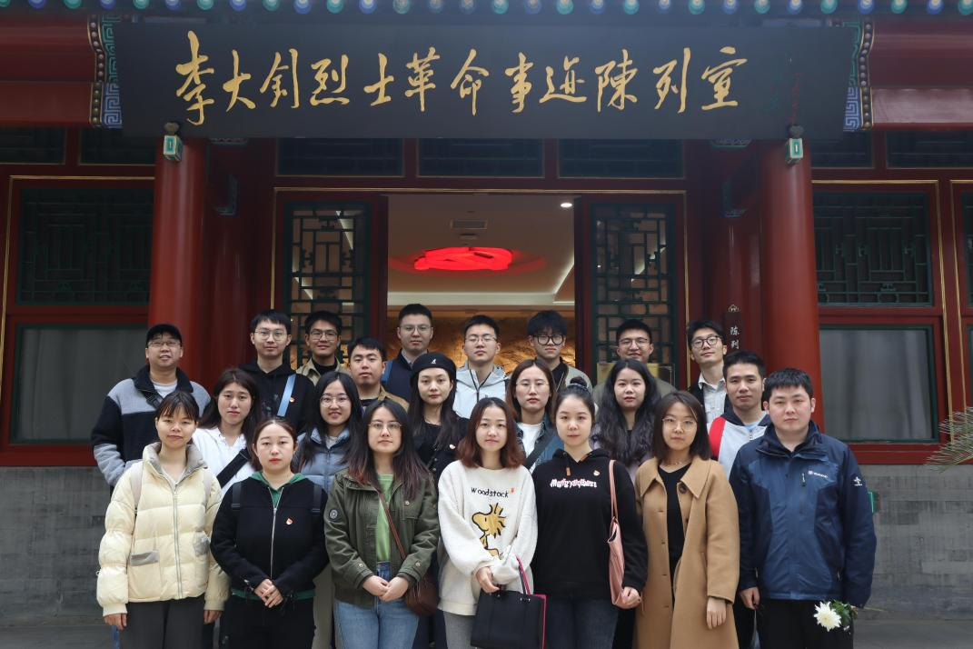 李大钊烈士陵园是中共中央宣传部确定的全国首批爱国主义教育示范基地。活动伊始,党支部书记侯成同志主持活动并简要介绍了李大钊烈士的革命事迹和就义细节。在肃穆的雕像前,同志们列队肃立,面向李大钊烈士汉白玉雕像默哀1分钟,沉重悼念伟大的革命先驱。默哀毕,全体党员面向党旗庄严宣誓,重温入党誓词,以21世纪党员的青春之声,向这位热爱青年、鼓励青年、期盼青年的马克思主义者表达我们最深切的怀念。随后,全体同志向李大钊烈士墓敬献鲜花,并缓步绕行,瞻仰李大钊烈士墓。