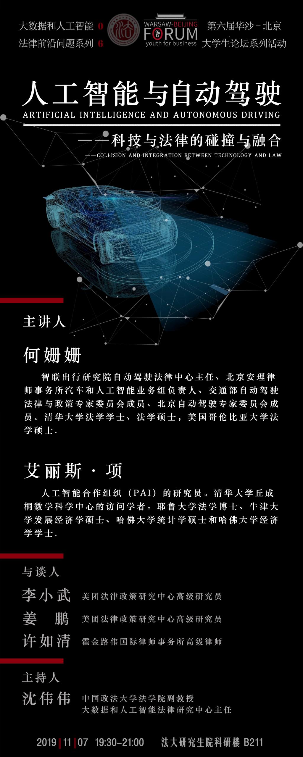 He Shanshan is the director of Autonomous Driving Law Center of Zhi Lian Chu Xing Institute, the head of automobile and artificial intelligence business group of Beijing Anli law firm, the member of Committee of Experts on Autonomous Driving Law and Policy of the Ministry of Transport, and the member of Beijing Committee of Experts on autonomous driving . She got a LL.B. and LL.M. degree from School of Law, Tsinghua University, and LL.M. degree from Columbia University.