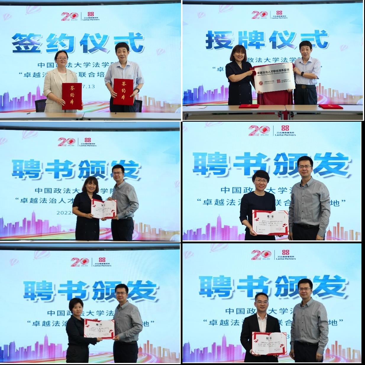 随后,刘大炜书记与尚娟律师共同签署《建立卓越法治人才联合培养基地协议书》,并与程阳律师为“卓越法治人才联合培养基地”牌匾揭牌,张力副经理向实习兼职导师程阳、王丽、余燕、罗金川四位律师颁发聘书。