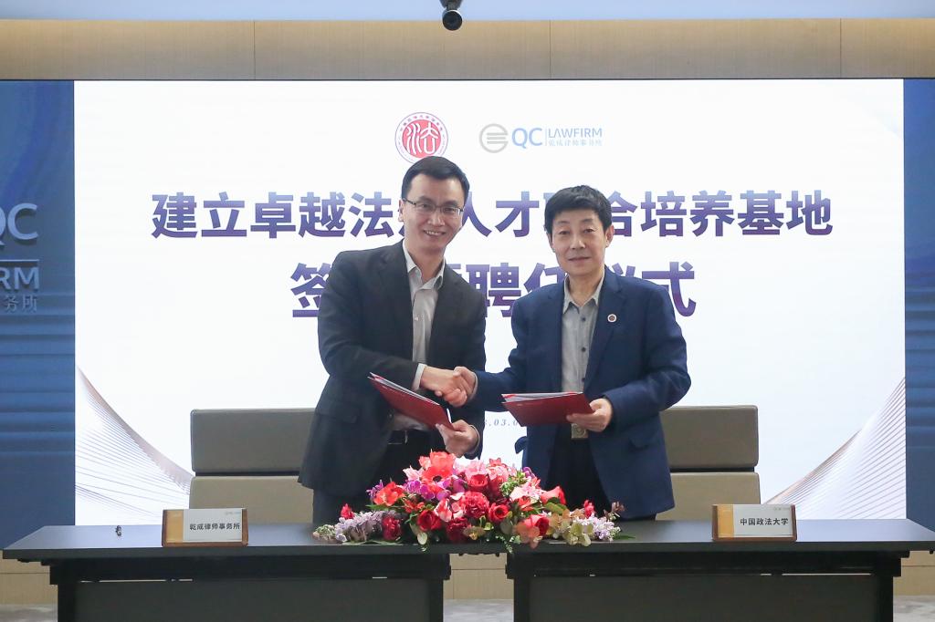 随后,刘大炜书记与江诗伟律师共同签署《建立卓越法治人才联合培养基地协议书》,并为“卓越法治人才联合培养基地”牌匾揭牌。yl88858永利官网副经理张力与律师学研究中心主任王进喜代表公司聘任乾成所王兴尧、匡令清、张焱南、程通、贾建兵五位律师为“yl88858永利官网兼职实习导师”。